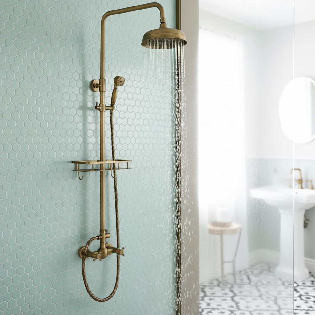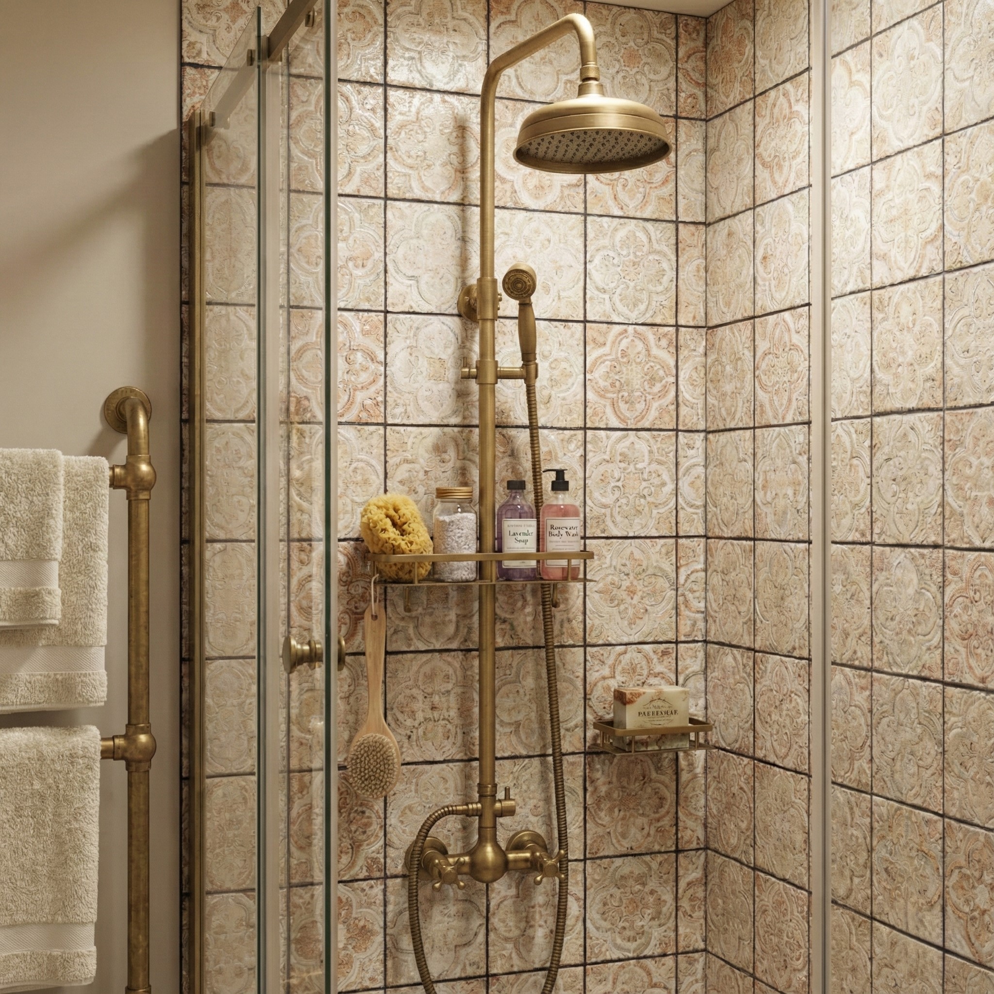 Wybierając model Duża Deszczownia Vintage z Półką bez Dolnej Wylewki, inwestujesz w ponadczasowy design i wygodę użytkowania, zamieniając codzienny prysznic w relaksujący rytuał.