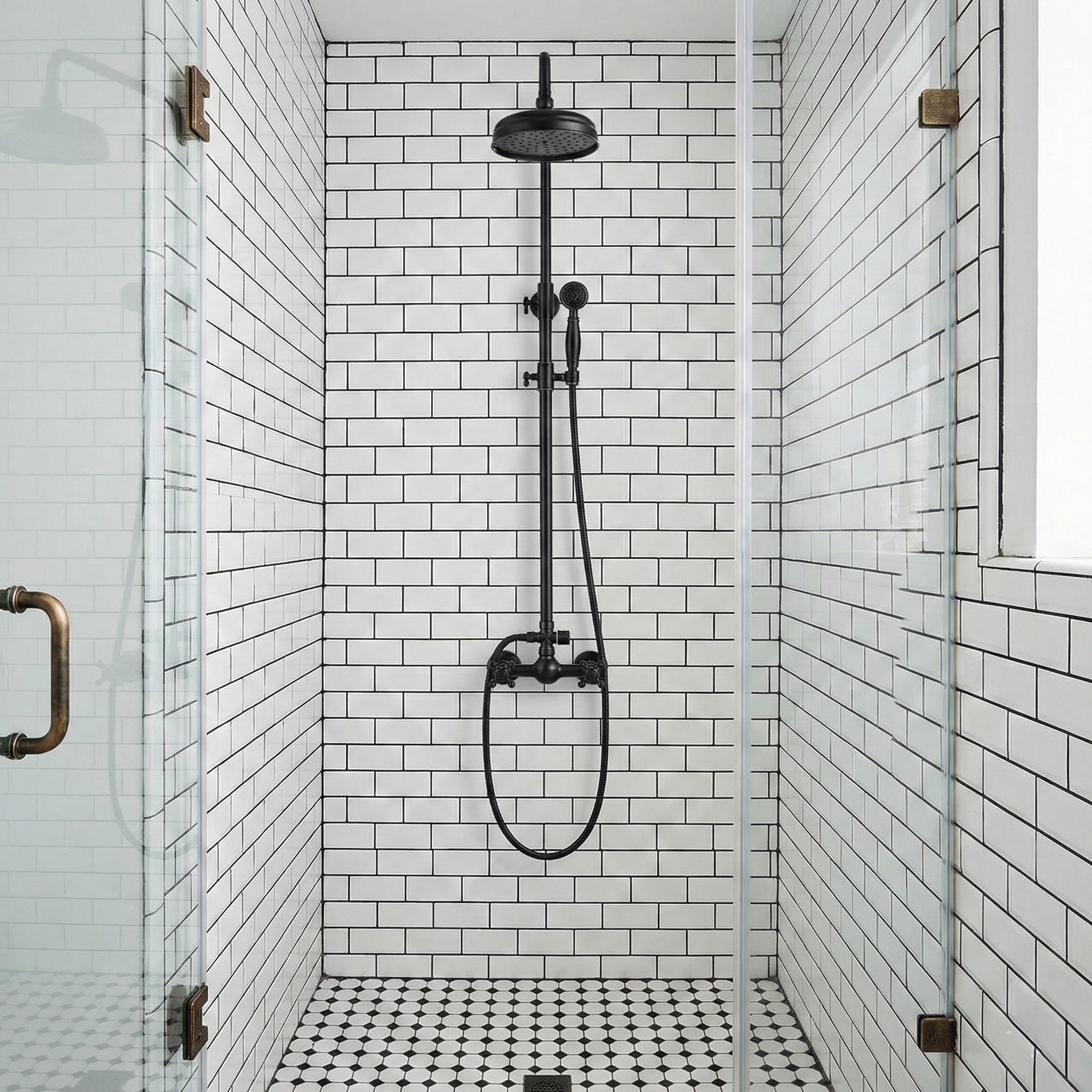 Bateria Prysznicowa Retro z Wysoką Deszczownią i Kurkami Bez Wylewki