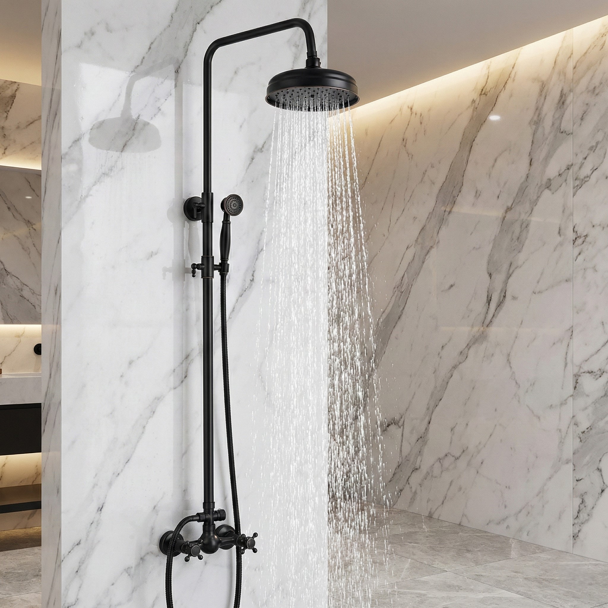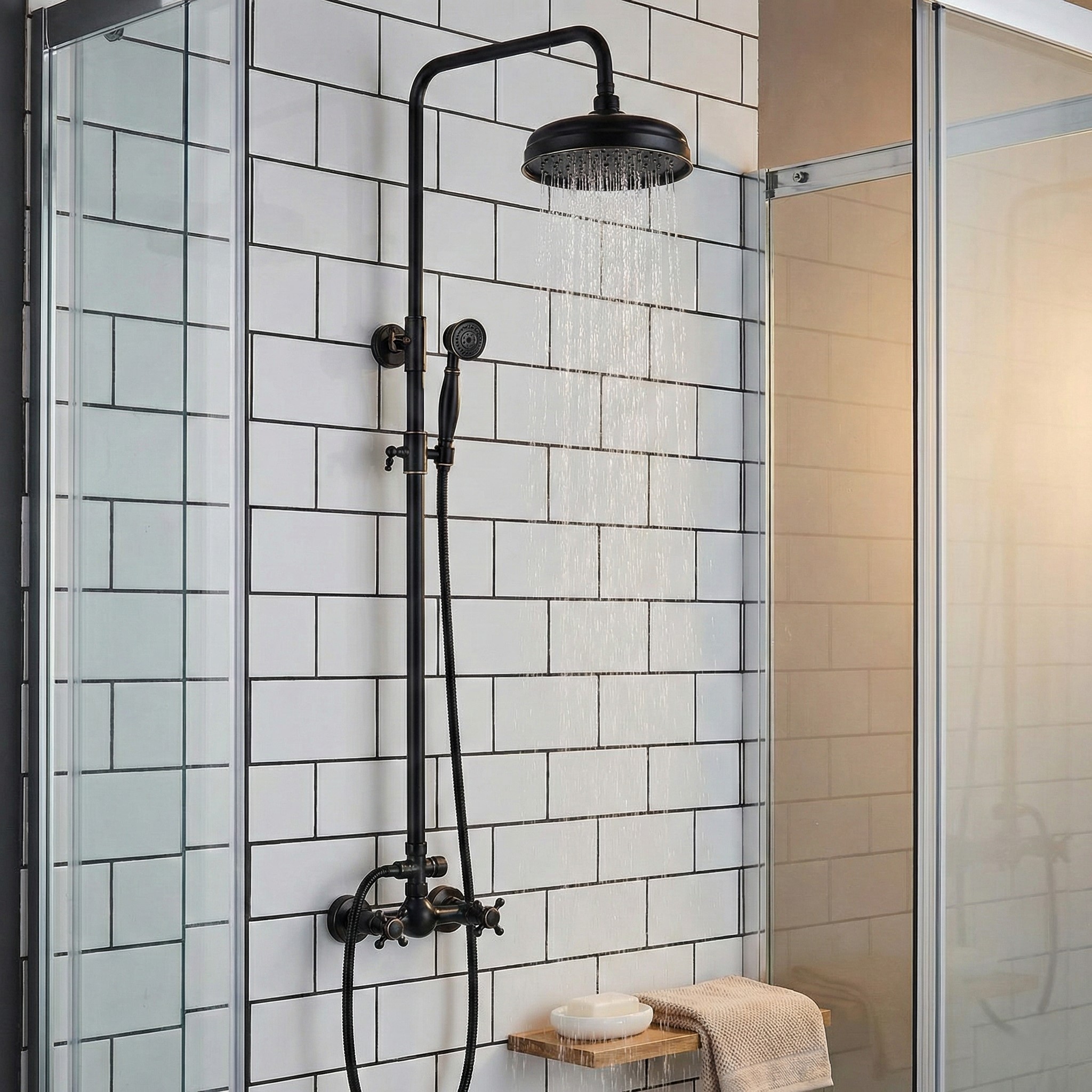 Bateria prysznicowa retro w to doskonały wybór dla osób, które cenią sobie elegancję i klasyczny wygląd. Wyposażona w klasyczne dwa kurki regulujące strumień wody – osobny dla wody ciepłej i zimnej – zapewnia precyzyjną kontrolę temperatury wody. Bateria nie posiada dolnej wylewki, dlatego jest idealna do montażu w kabinach prysznicowych, a nie nad wanną.